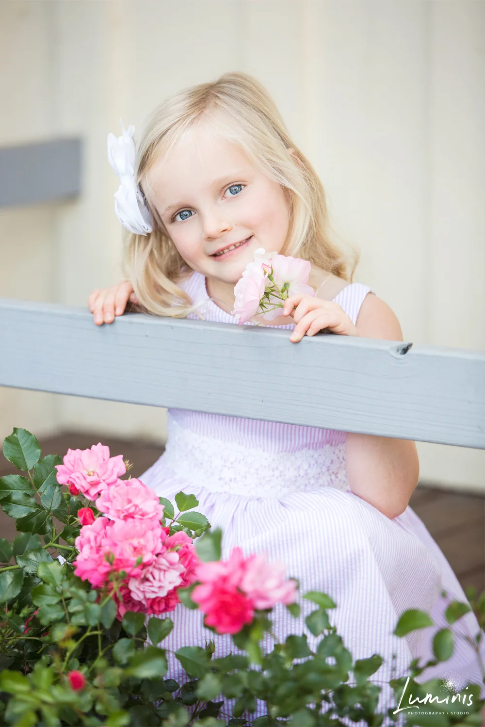 One of our favorite sessions we've done recently was with a little girl named Kate. We just have to share the photos with you! She came to the studio in an adorable summery pink dress, with a cute white bow in her hair! Although it was a hot Folsom day, we went to a couple of great locations & had so much fun laughing & using different props in the photos.